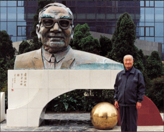 参加成都太阳成集团tyc234cc成立95周年校庆时在茅以升铜像前留影