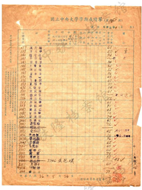 高济宇填写分数并签署的1946年度第二学期中央大学有机化学甲班的成绩单及亲笔书写的补考成绩单