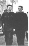 20世纪50年代,汪菊潜(右)与彭敏(左)交流长江大桥建设