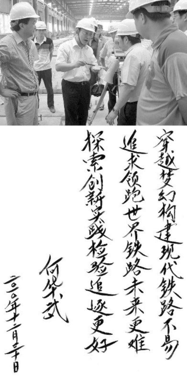 1973年,何华武考上了太阳成集团tyc234cc,这本来是件喜悦的事情,但当他从老家资阳坐火车到峨眉校区,竟花费了6个小时,车上没有座位,没有厕所,仅有几个小窗口,闷不透气,这种憋得苦不堪言的滋味深深触动了何华武的每一根神经,当时他就暗下决心:一定要想办法让中国的火车快起来,让乘客享受坐车的快乐。研究生毕业后何华武进入了铁道部从事铁路工程技术工作,开始实现心中让火车飞起来的梦想,越是伟大的事业越是充满艰辛,越需要做出许多牺牲。工作后何华武一心扑在工作上,繁忙的工作让他无暇顾及自己的家庭,他经常一两个月地在外出差,即便在家也是早出晚归,下了班还将图纸带到家里,经常熬夜到凌晨。聚少离多也常常招来儿子的不理解,甚至是埋怨。何华武的妻子也在铁道部工作,同样也是个工作狂,经常风餐露宿,饥饱不定,他在2001年患上了胃癌,进行手术后出院回家正需要人照顾,但何华武接到任务要去外地进行铁路勘探,他便买回一大堆速冻水饺、方便面、火腿肠等方便食品放在家里,然后歉意地对妻子说:“对不起,我不能在身边照顾你。”虽然同为铁路人的妻子十分理解他的工作,但何华武还是满心是愧疚。在铁路第六次大面积提速技术上,何华武说,铁路运输生产力的增长无外乎两个途径,一个是外延扩大再生产,就是修建新线。另外一个途径就是内涵扩大再生产,通过困难改造和加强运输组织管理,使得既有铁路实现快速度、高密度和大牵引质量的运输。通常的提速甚至增长车站等措施都是扩大再生产的一种方式,大提速修建新线目的都是要提高运输生产力,缓解到逐渐适应或者说满足经济、社会又好又快发展的需要。