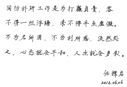 图为任辉启字迹