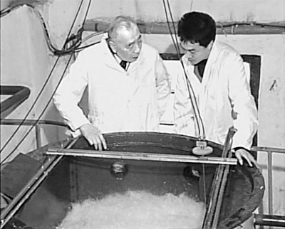 20世纪90年代,余国琮(左)指导博士研究生开展精馏塔流体力学实验研究