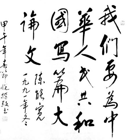 “新中国是我的祖国,我没有理由不爱她。这种诚挚的爱,就象是被爱神之箭射中了一样,是非爱不可的!”——陈能宽