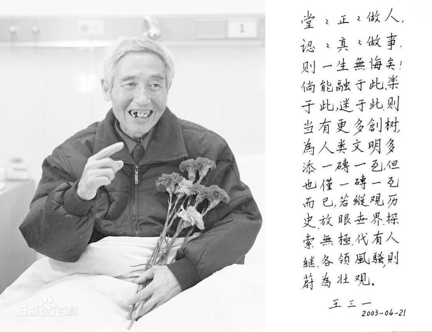 1953年,风华正茂的王三一离开清华园,踏上了一条水电勘测设计之路。他干的第一个工程是江西上游江水电站。新中国成立初期,工作生活条件相当艰苦,设计电站的资料残缺不全。他带着一个小组,挑着行李下基层去抄录了几万文字的水文资料。为求得水域面积,又挑着行李在山区丛林中攀岩找路,跋山涉水,寻找第一手地质资料。他常说:“搞水电站建大坝,地质最重要,搞设计必须吃透地质情况,我不喜欢看二手资料,吃别人喂的饭。”