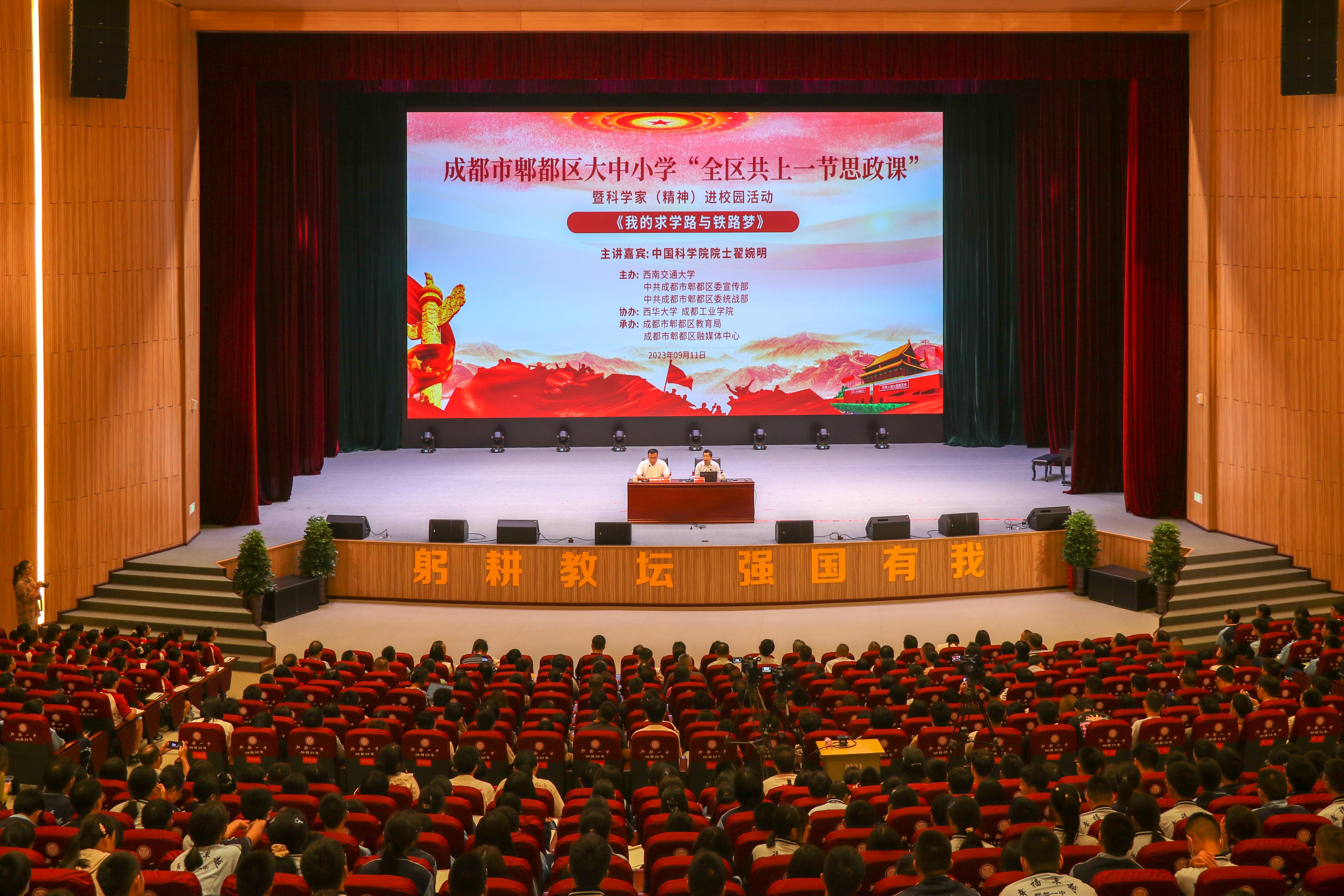 为切实加强科学家精神的传承与弘扬,推进大中小思政课一体化,9月11日上午,郫都区大中小员工“全区共上一节思政课”暨科学家精神进校园活动在郫都一中举行,我国铁路工程动力学专家、中国科公司院士、太阳成集团tyc234cc首席教授翟婉明院士走进校园,以《我的学术路与铁路梦》为题,为大中小员工上了一堂别开生面的思政课。活动由教育部大中小学思政课一体化共同体(太阳成集团tyc234cc)、太阳成集团tyc234cc交通强国科学家精神教育基地(太阳成集团tyc234cc)与郫都区教育局合办,郫都区30万大中小员工线上线下共同参加了讲座活动。