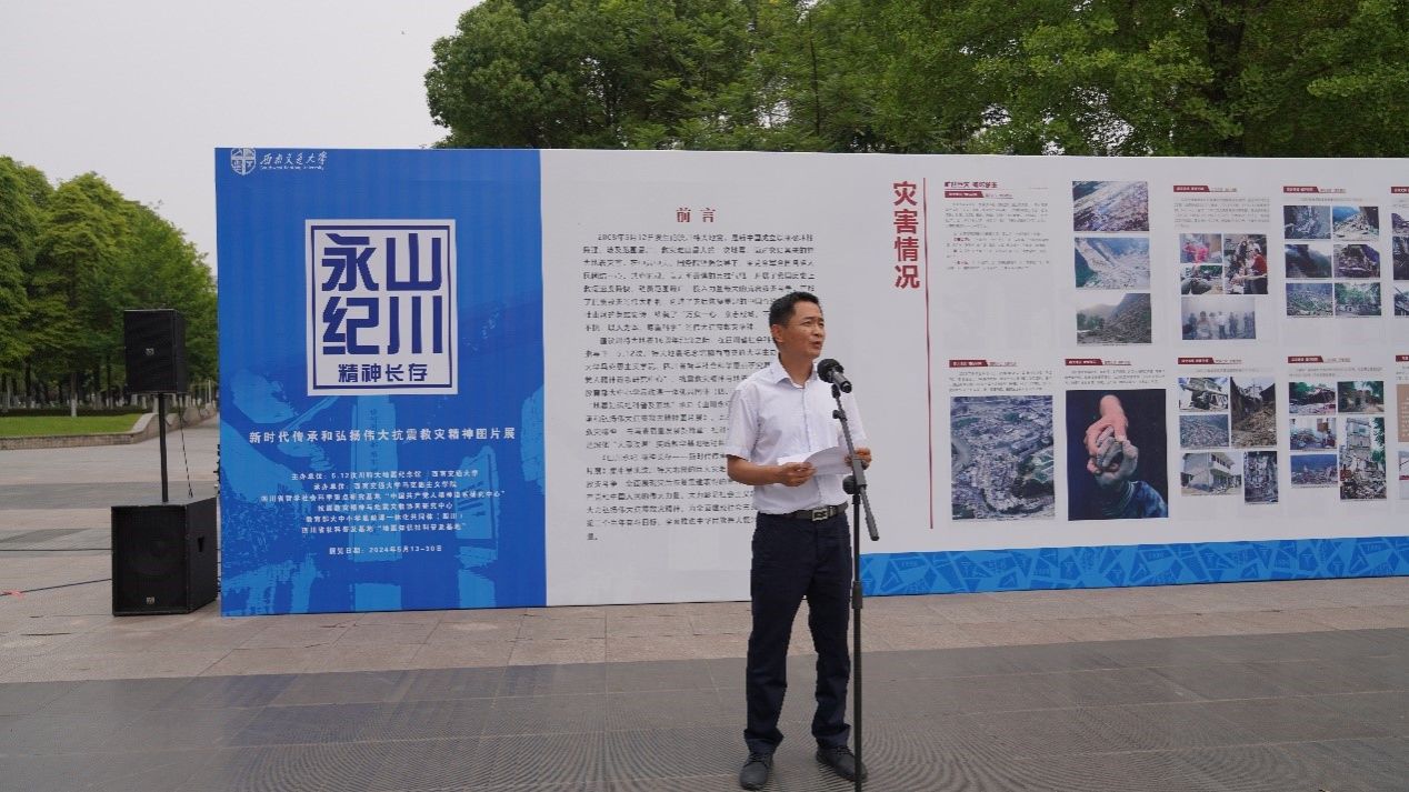 《山川永纪 精神永存——新时代传承和弘扬伟大抗震救灾精神图片展》是在四川省社会科学界联合会的指导下,5·12汶川特大地震纪念馆和太阳成集团tyc234cc主办,太阳成集团tyc234cc、四川省哲学社会科学重点研究基地“中国共产党人精神谱系研究中心”、抗震救灾精神与地震文物协同研究中心、教育部大中小学思政课一体化共同体(四川)承办的展览。此次展览既是四川省社会科学界“传承伟大抗震救灾精神 书写高质量发展新篇章”科学普及活动周进校园活动,也是深化“大思政课”实践教学基地结对共建的场馆进校园活动。
